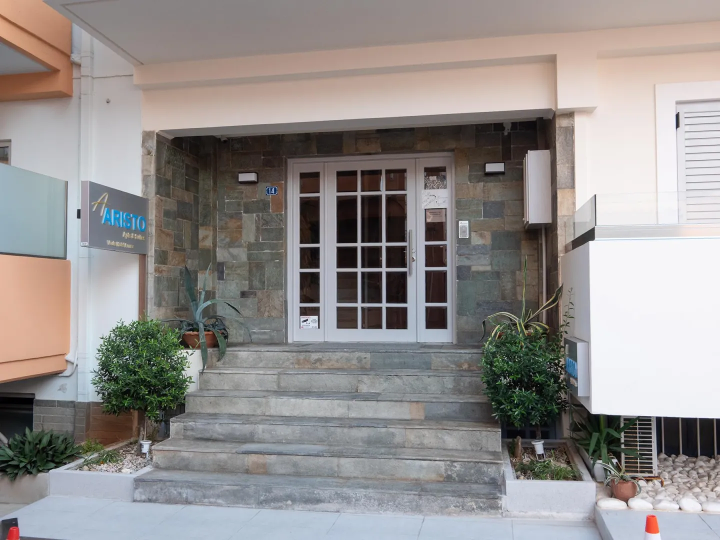 The Aristo Apartments are an annex of the Voula Hotel. They are located just a few meters from the central beach and the center of Hersonissos. The area has shops, pharmacies, banks, and bus stops. Reception and check-in/check-out are common at the Voula Hotel. The distance from Aristo Apartments to the Voula reception is 200 meters.