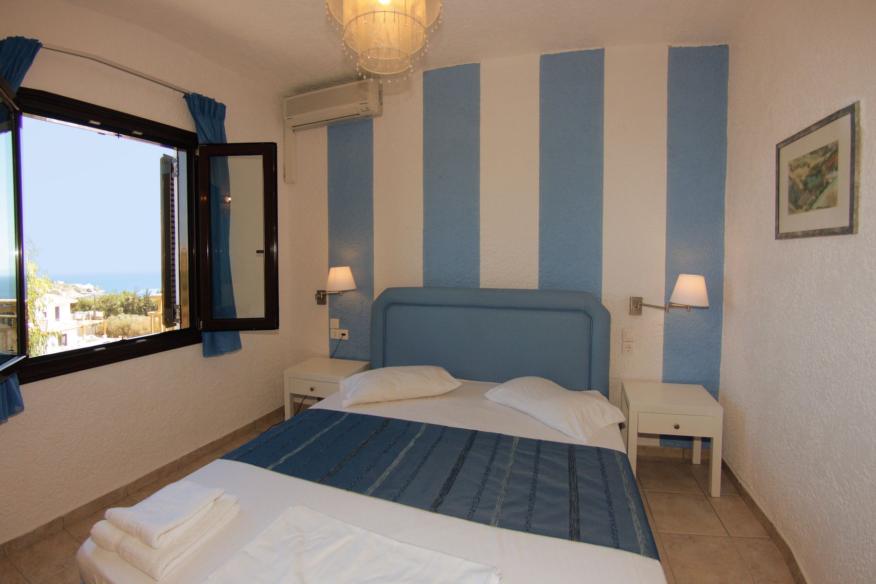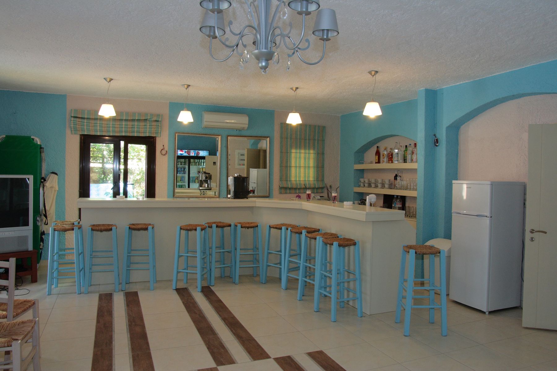 There are 11 apartments with two bedrooms, 12 apartments with one bedroom, and 5 studios. The apartments offer excellent service and a privileged position in a calm, clear, and picturesque setting. The blue-crystal-clear waters of Agia Pelagia (awarded the Blue Flag) guarantee comfortable, economical, and unforgettable vacations. The hotel complex was renovated in 2019. It has 28 spacious apartments that are traditionally decorated and fully equipped to offer comfort and ease. Each apartment has a kitchenette, safe, refrigerator, air conditioning, TV, bathroom with WC, and a balcony with a view of the sea. The snack bar and big open-air swimming pool guarantee the comfort of guests.