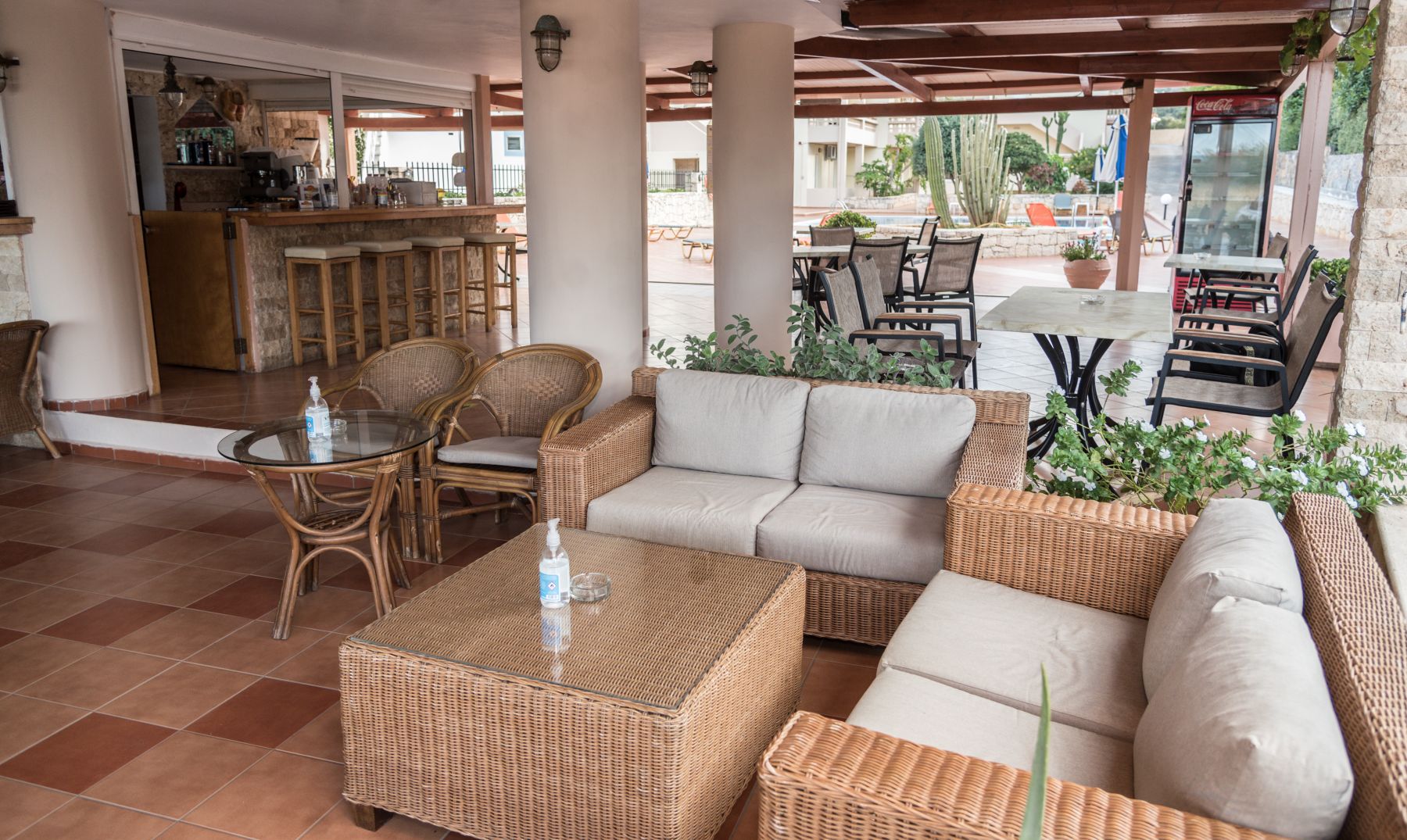 Guests enjoy an infinity swimming pool, sun terrace, and lush garden. The aparthotel features a bar, pool bar, coffee shop, and outdoor seating area. Free Wi-Fi is available throughout the property.