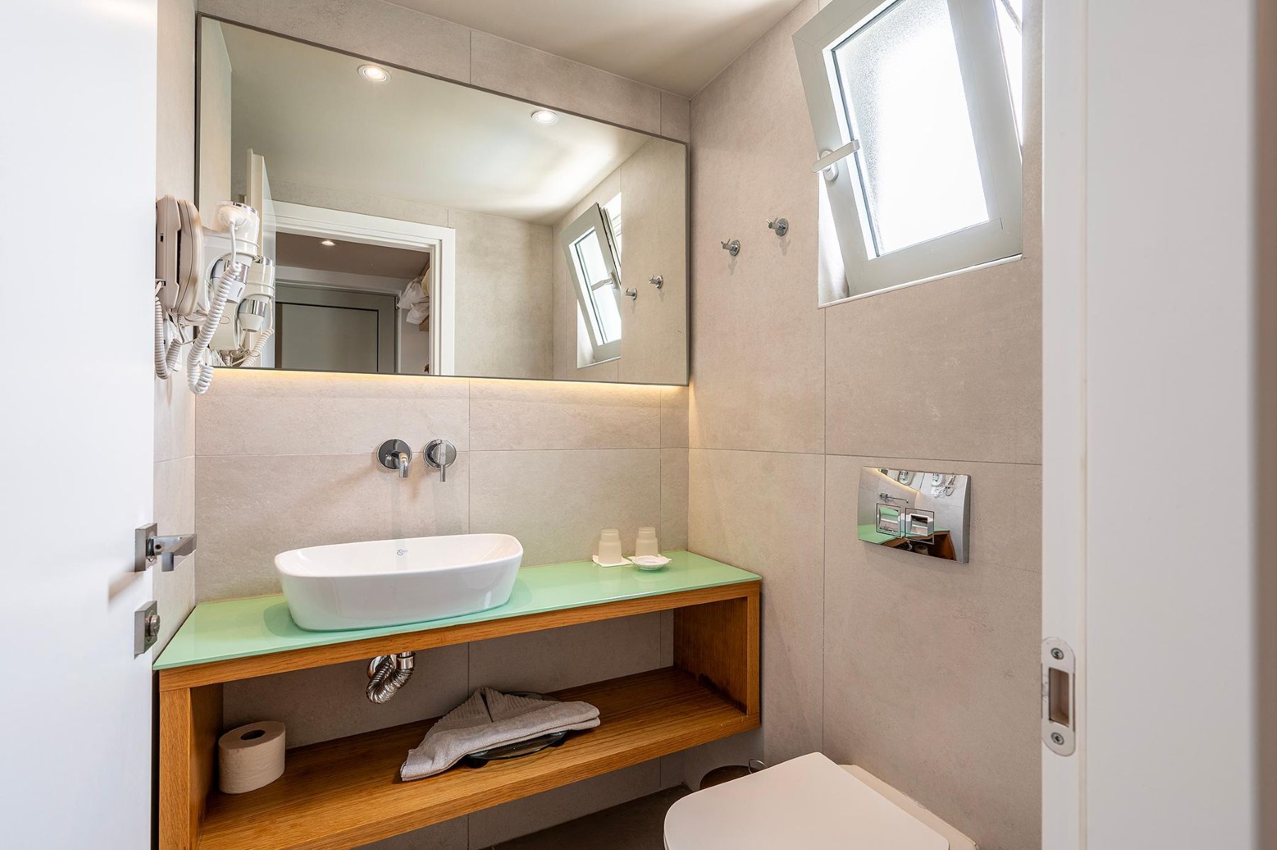 The rooms feature either a balcony or terrace with a side sea view, designed in a contemporary style with stylish furniture and first-class furnishings and decoration in different colors. There is a comfortable double bed, a lounge armchair, an office, an open wardrobe, and finally a luxury bathroom with a walk-in shower that is divided from the sleeping area with a geometric wooden divider. The accommodation is ideal for 2 people.