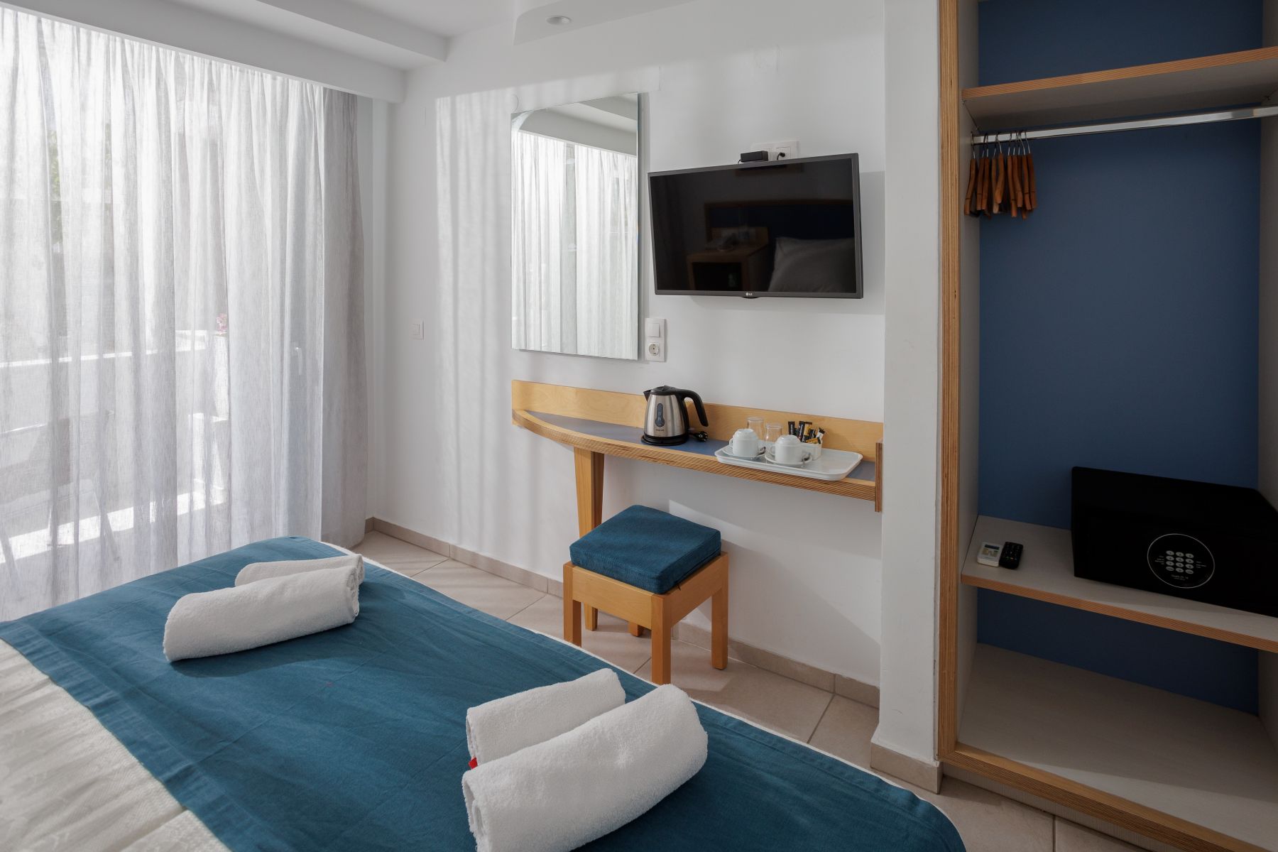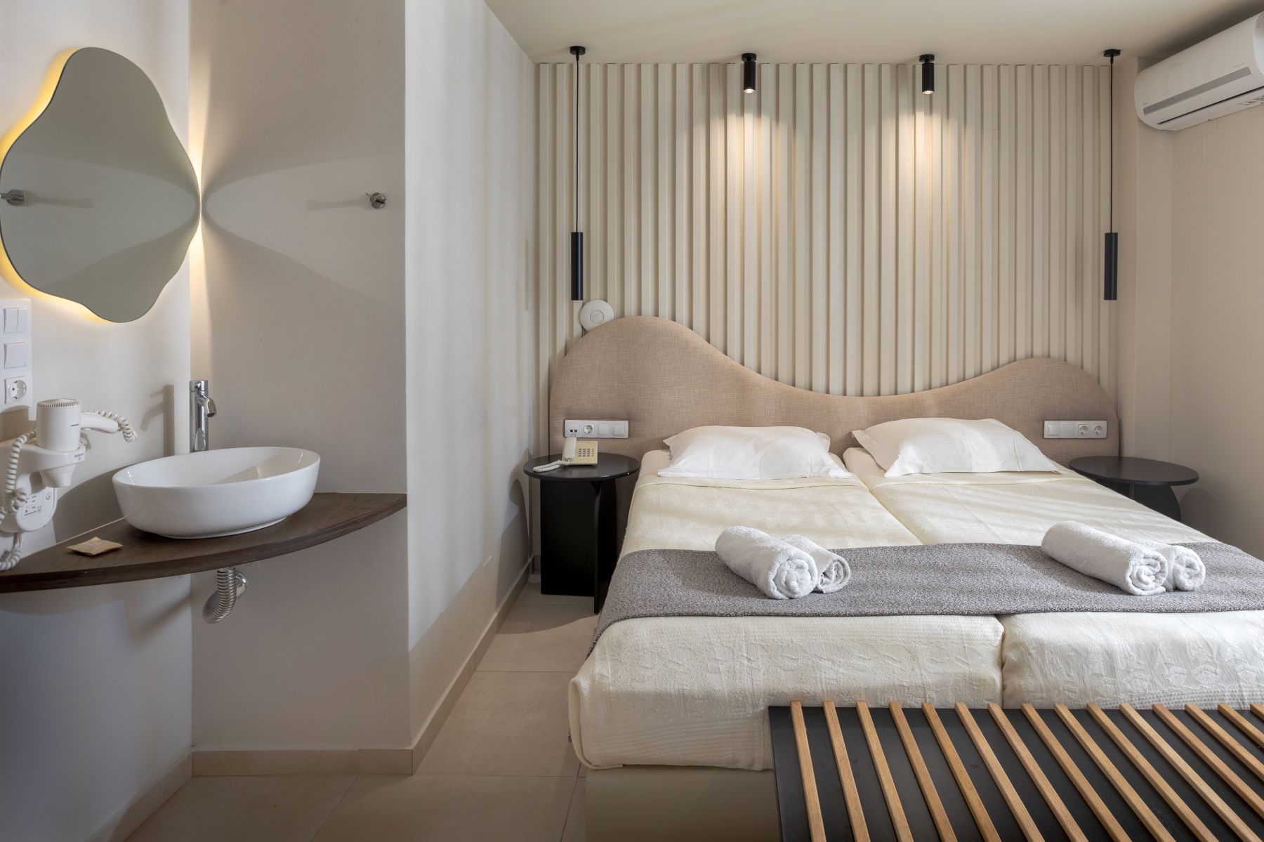 Alia Beach is a captivating hotel complex in Hersonissos, offering a blend of attractive rooms and suites. Its privileged position in the seaside area of Hersonissos makes it the ideal place for couples and families to vacation. Its location on the most advantageous spot of Hersonissos Bay is unparalleled. It is right in front of the endless Cretan Sea and just three minutes from the town, medical center, and public transportation. Alia Beach Hotel offers easy access to the finest parts of Crete. The hotel’s unbeatable location will satisfy even the most demanding travelers.