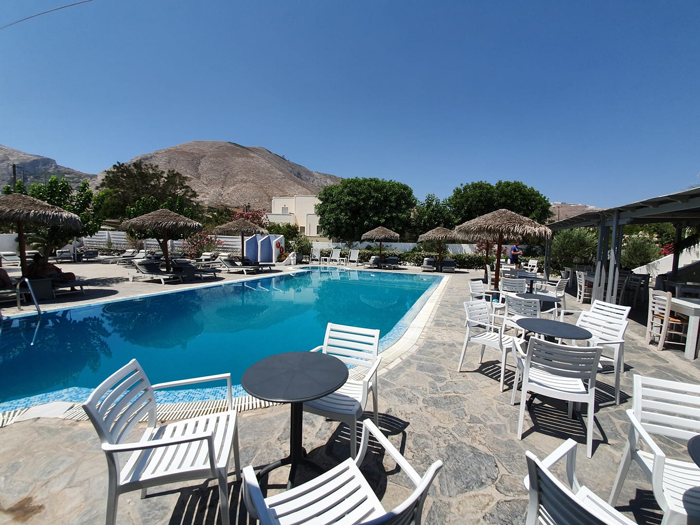 Alia Hotel is located in Kamari of Santorini. It is situated at the foot of the Ancient Thira mountain.