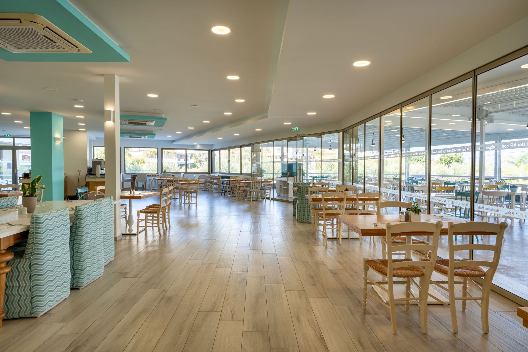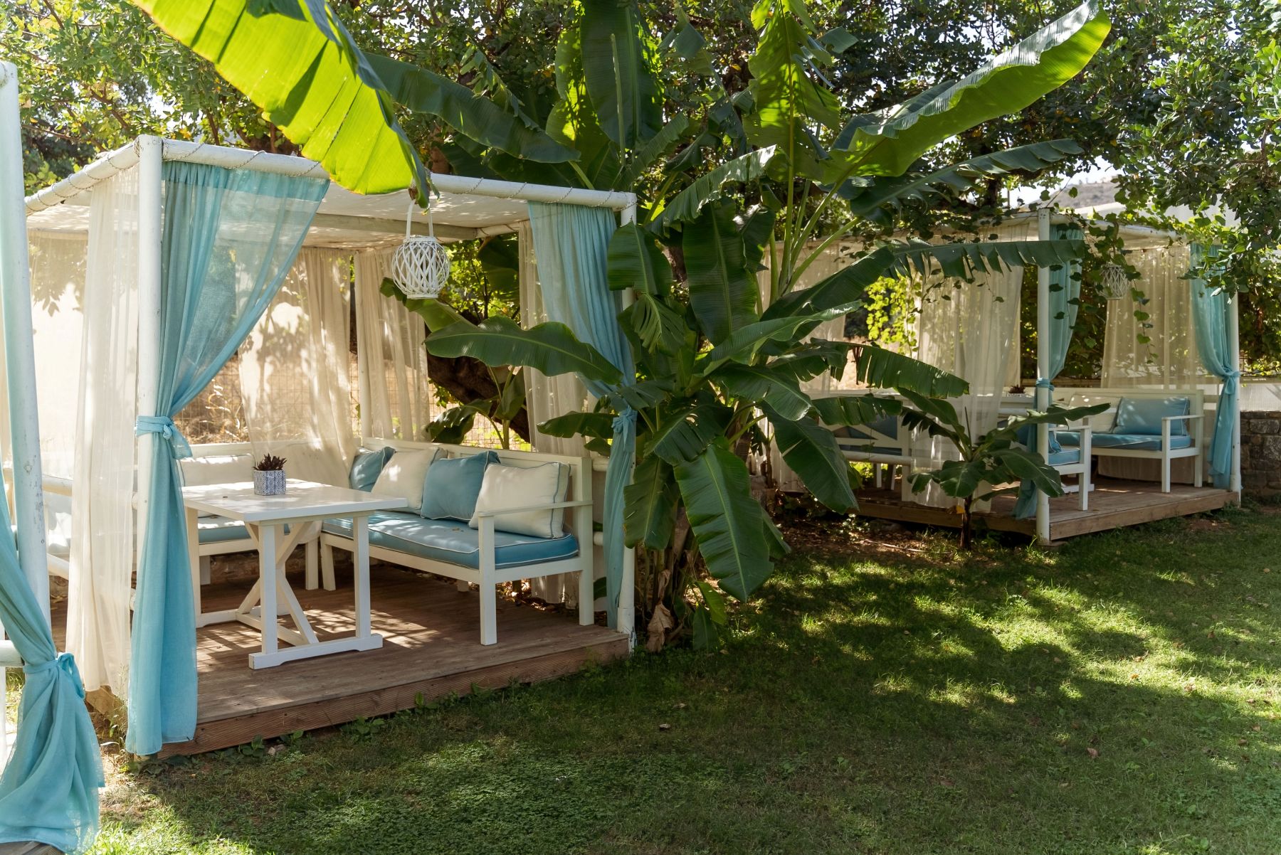 • Comfortable garden, between the hotel and the beach, with grass, sun beds(free), olive and carob trees