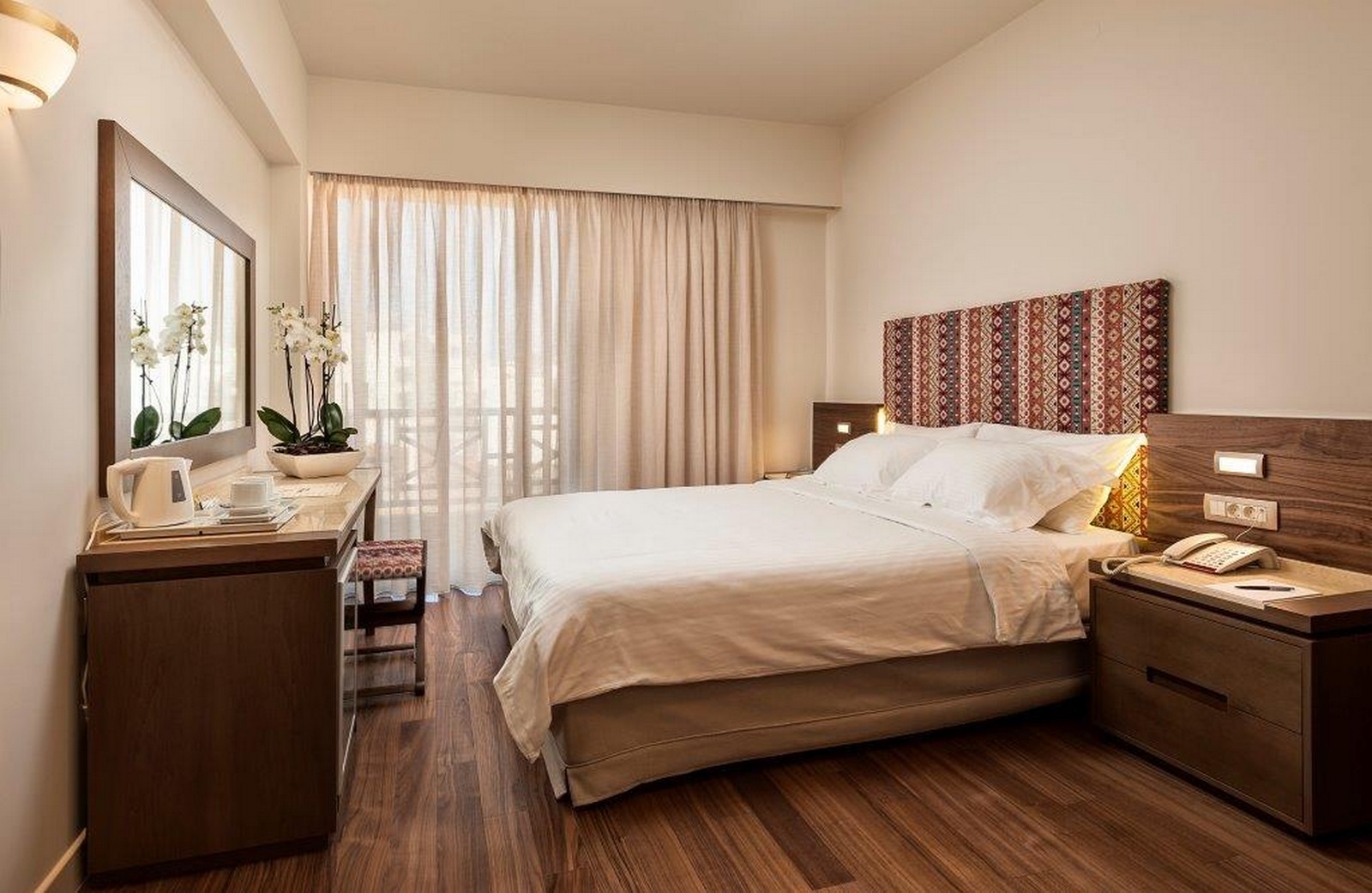 Covering an area of 14-18 square meters the Standard Rooms have been designed with comfort in mind, offering all that a modern traveler may desire. Bathed in natural light, the rooms have been decorated in style with elegant warm hues that create a feeling of euphoria. Featuring a large bed or two single beds as well as a beautiful bathroom with shower and lavish toiletries, the Standard Rooms are an excellent value for money choice for travelers seeking for their own peaceful hideaway to relax after a day at the beach, an island excursion or a long business meeting.