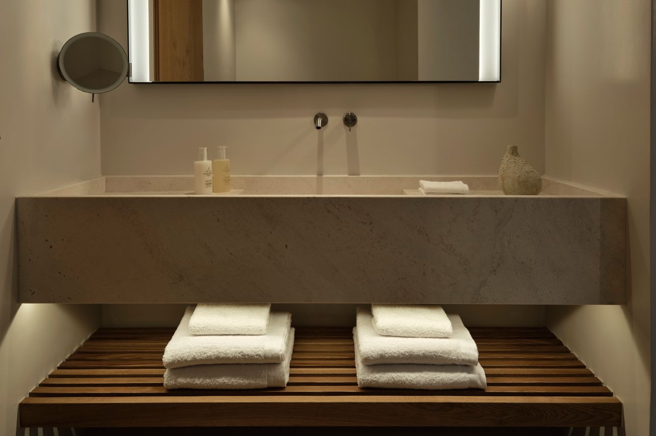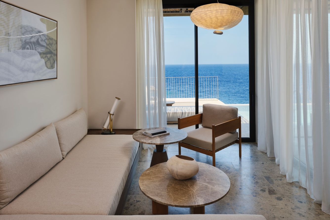 All rooms, suites, villas, and common areas are thoughtfully designed with a refined, minimalist aesthetic that harmonizes with the surrounding environment. Every room offers breathtaking sea views, providing a unique and intimate connection with the sea, allowing guests to experience the full beauty of the coastal landscape.