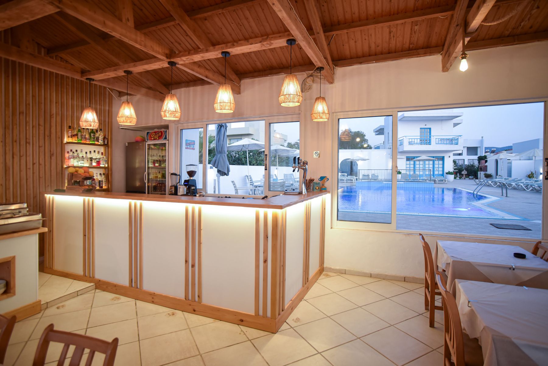 There are 37 rooms including Double Room Garden View 25 m2 and Double Room Garden View for Single Use, Double Room Sea View 25 m2, Apartment Garden View 40 m2 and Apartment Sea View 40 m2. All rooms are fully equipped with Air Condition (with extra charge), refrigerator, satellite TV, Balcony or Terrace, Bath / Shower, Safety Deposit Box (free of charge). Kasapakis studios and apartments are decorated in a simple Mediterranean style. A daily buffet breakfast is provided at this family-run hotel. Drinks are available on the poolside bar.