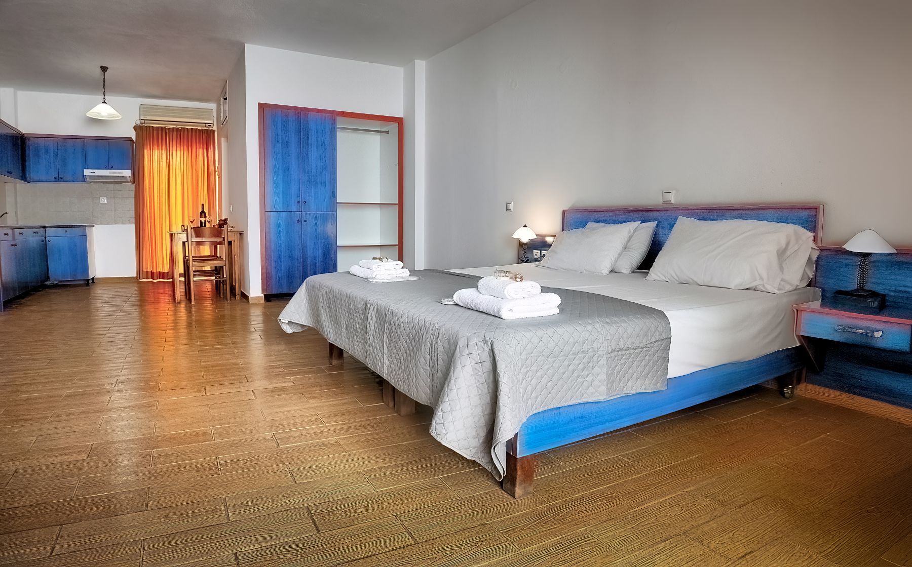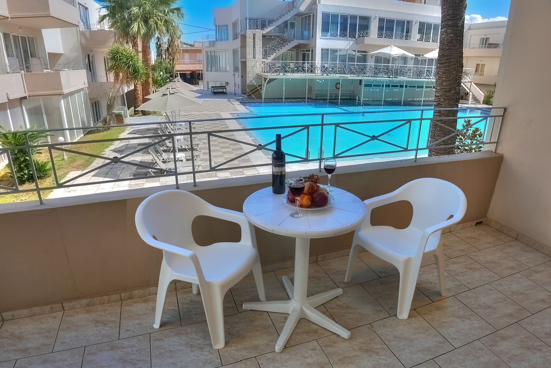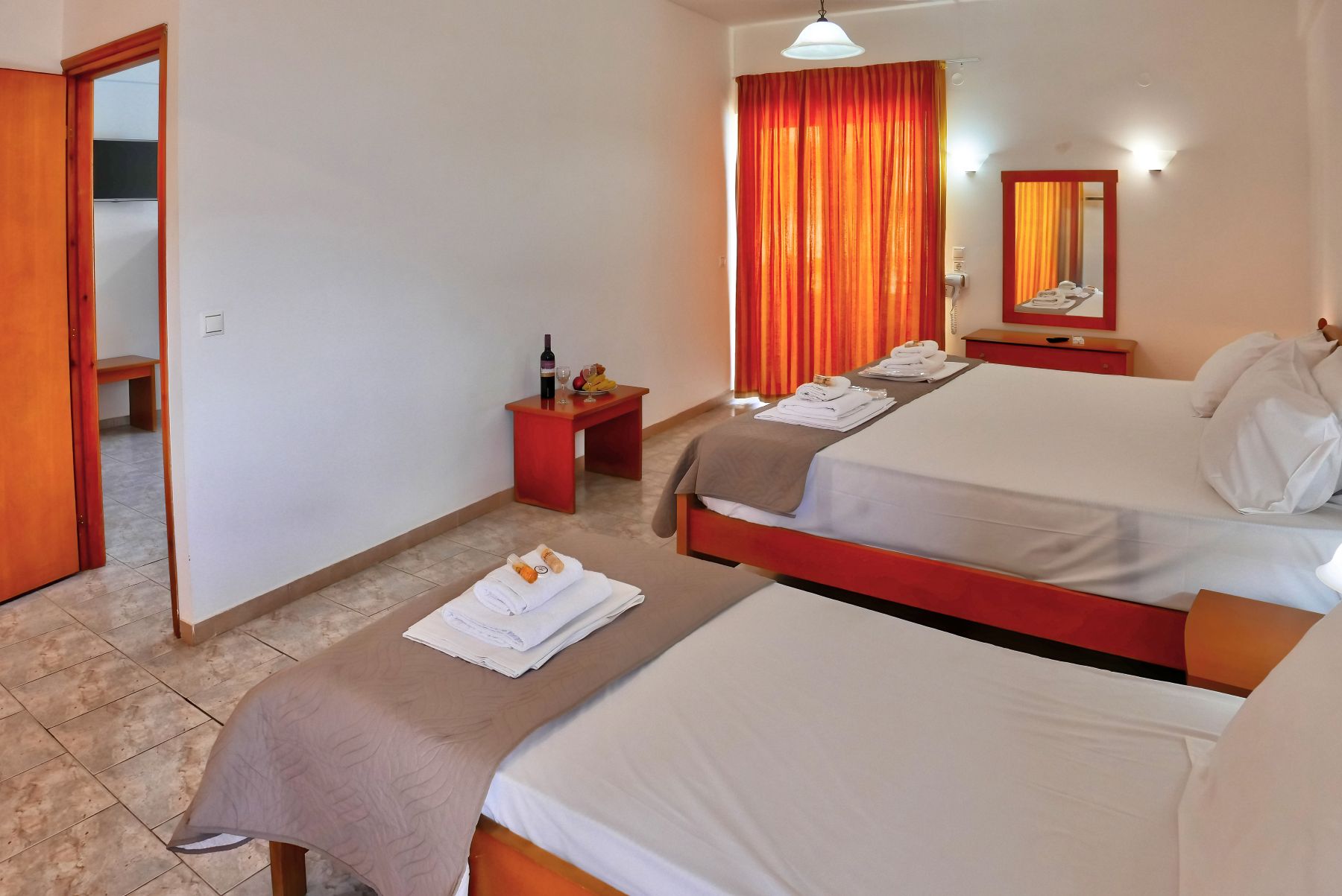 Room size 35 sq.m. The rooms are equipped with bathroom, air conditioning(extra charge), WiFi, safe deposit box (extra charge), TV, telephone, kitchenette, fridge, microwave, hairdryer and balcony or terrace