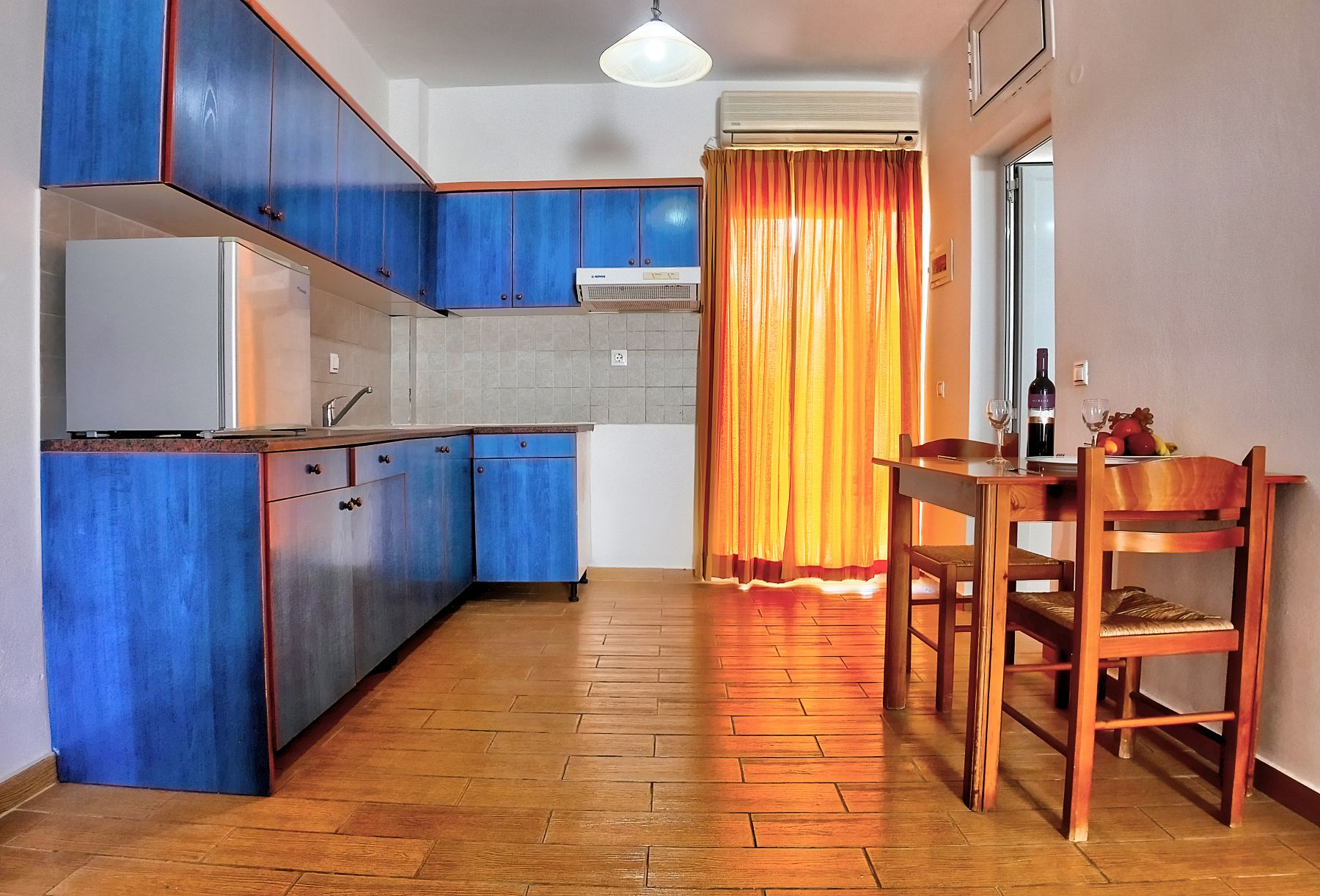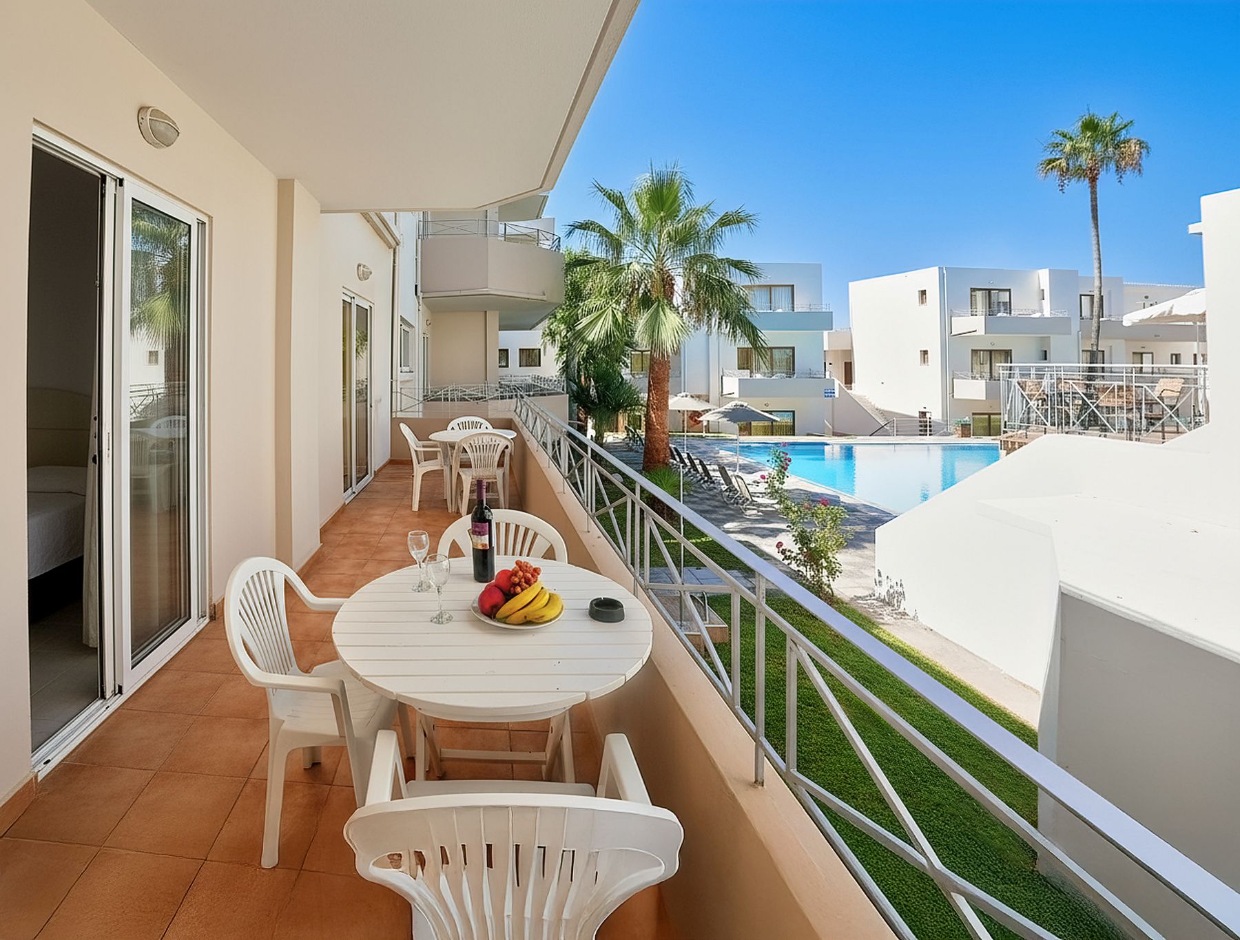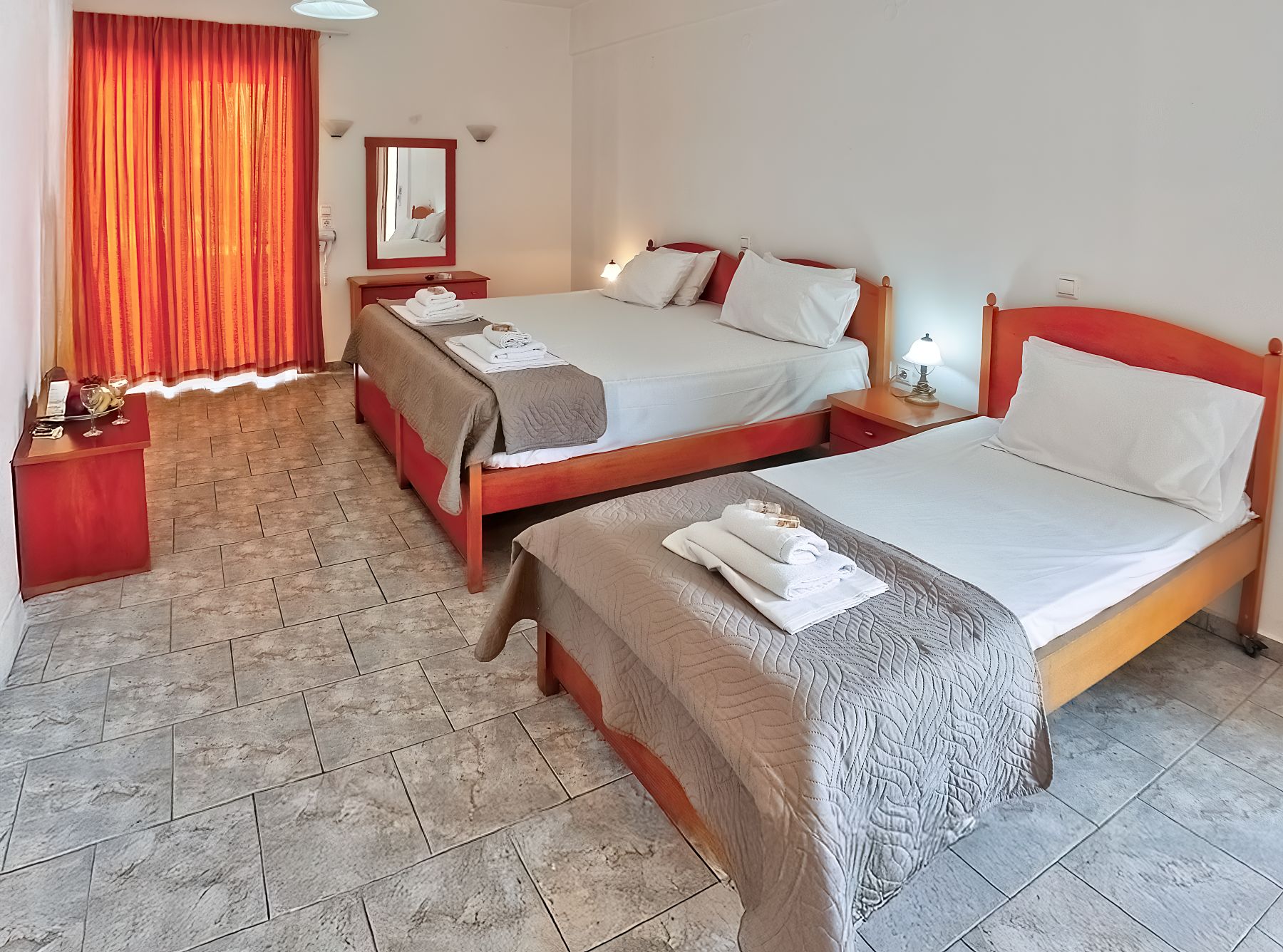 Room size 35 sq.m. The rooms are equipped with bathroom, air conditioning(extra charge), WiFi, safe deposit box (extra charge), TV, telephone, kitchenette, fridge, microwave, hairdryer and balcony or terrace