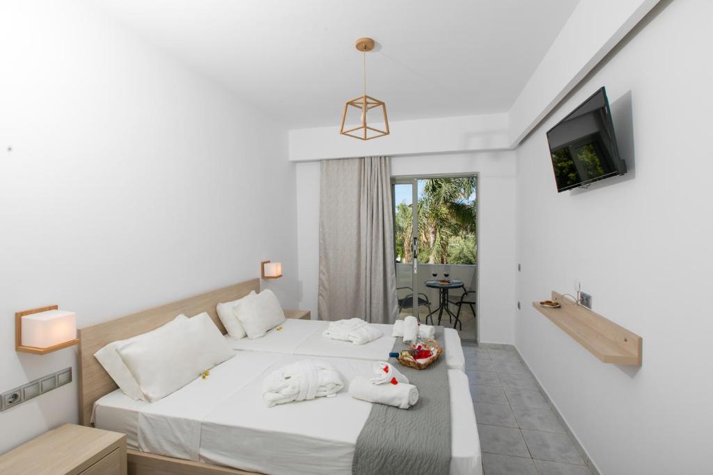 The Hotel is about about 800 meters from the center of Bali were the guests can find numerous shops, restaurants and bars are within walking distance. The nearest bus stop is 800 m away from the hotel. The town of Rethymno is 30 km away, while Heraklion City and Airport is at 50 km. Free private, on-site parking is possible.