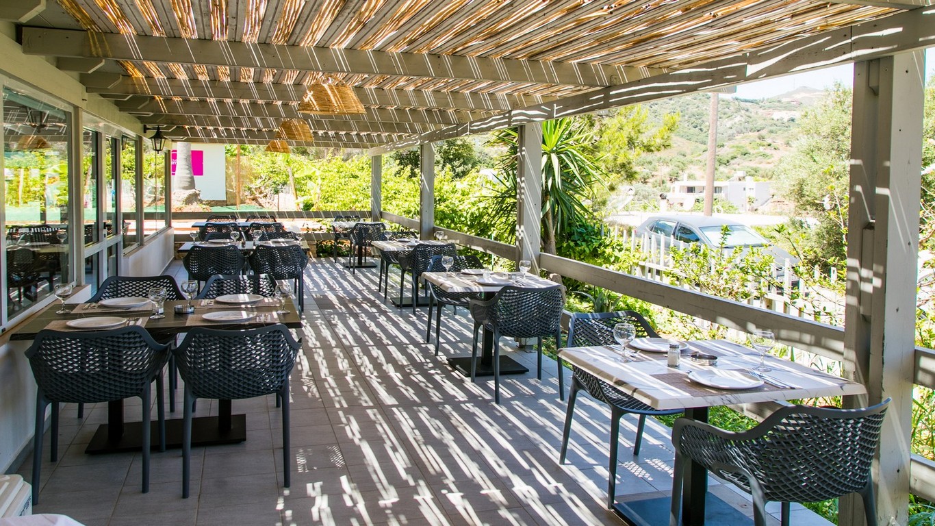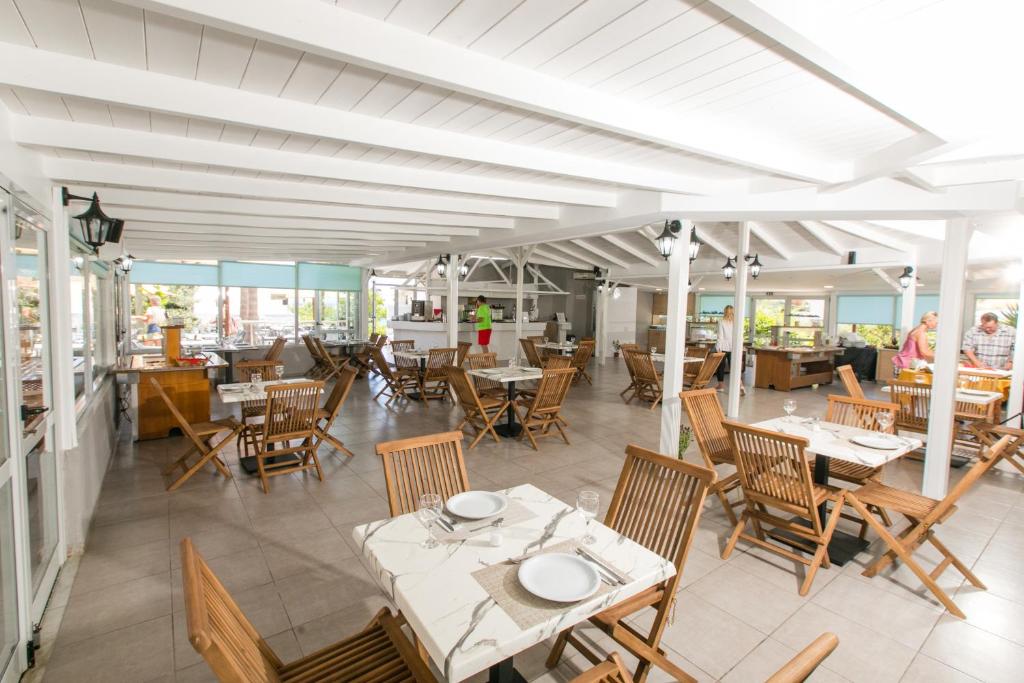 The main restaurant offers indoor air-conditioned dining and an outdoor atrium where you can enjoy a diverse buffet for breakfast, lunch, and dinner. They also have thematic nights featuring Italian, Greek, and BBQ evenings, as well as a buffet with Cretan specialties. Special dietary meals such as vegetarian or diabetic options are available upon request.