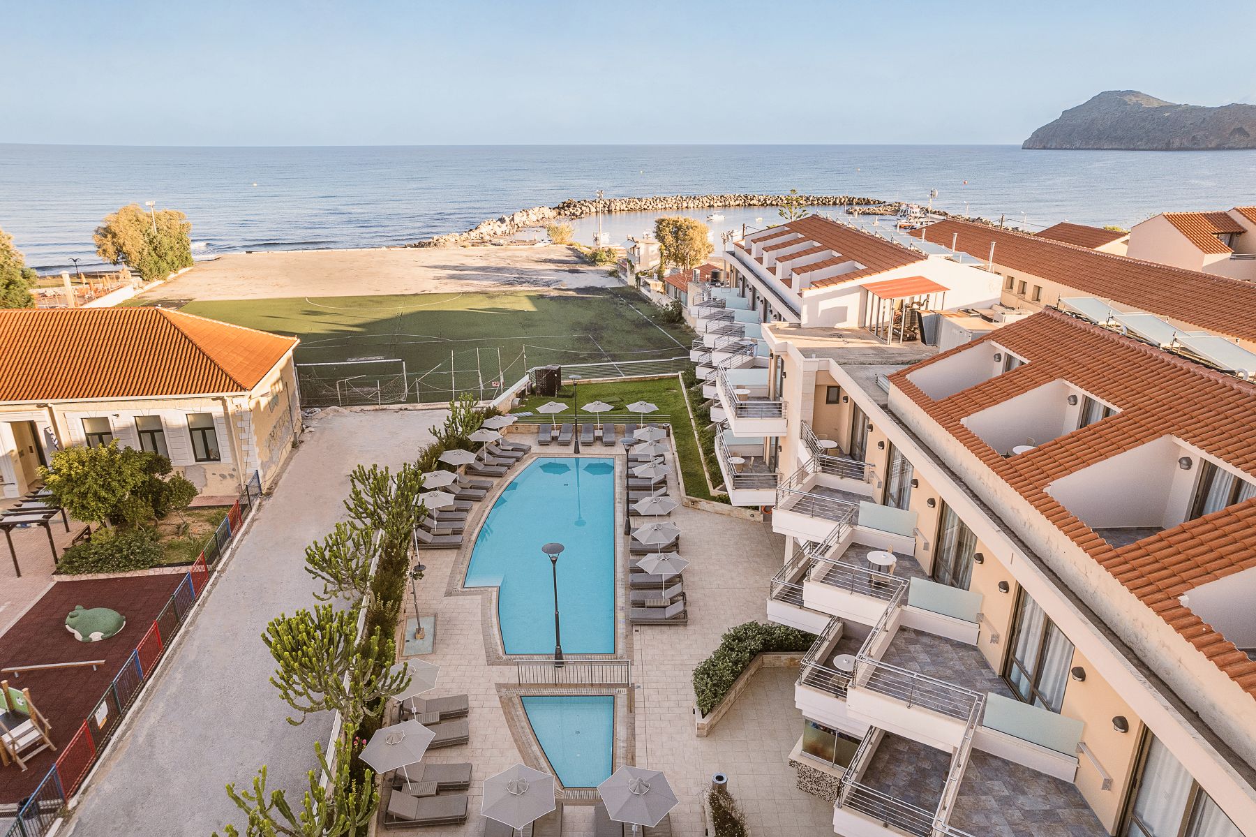 - Padel Court (extra charge, the facilities are located at the sister hotel Porto Platanias Village Resort 100 m away)