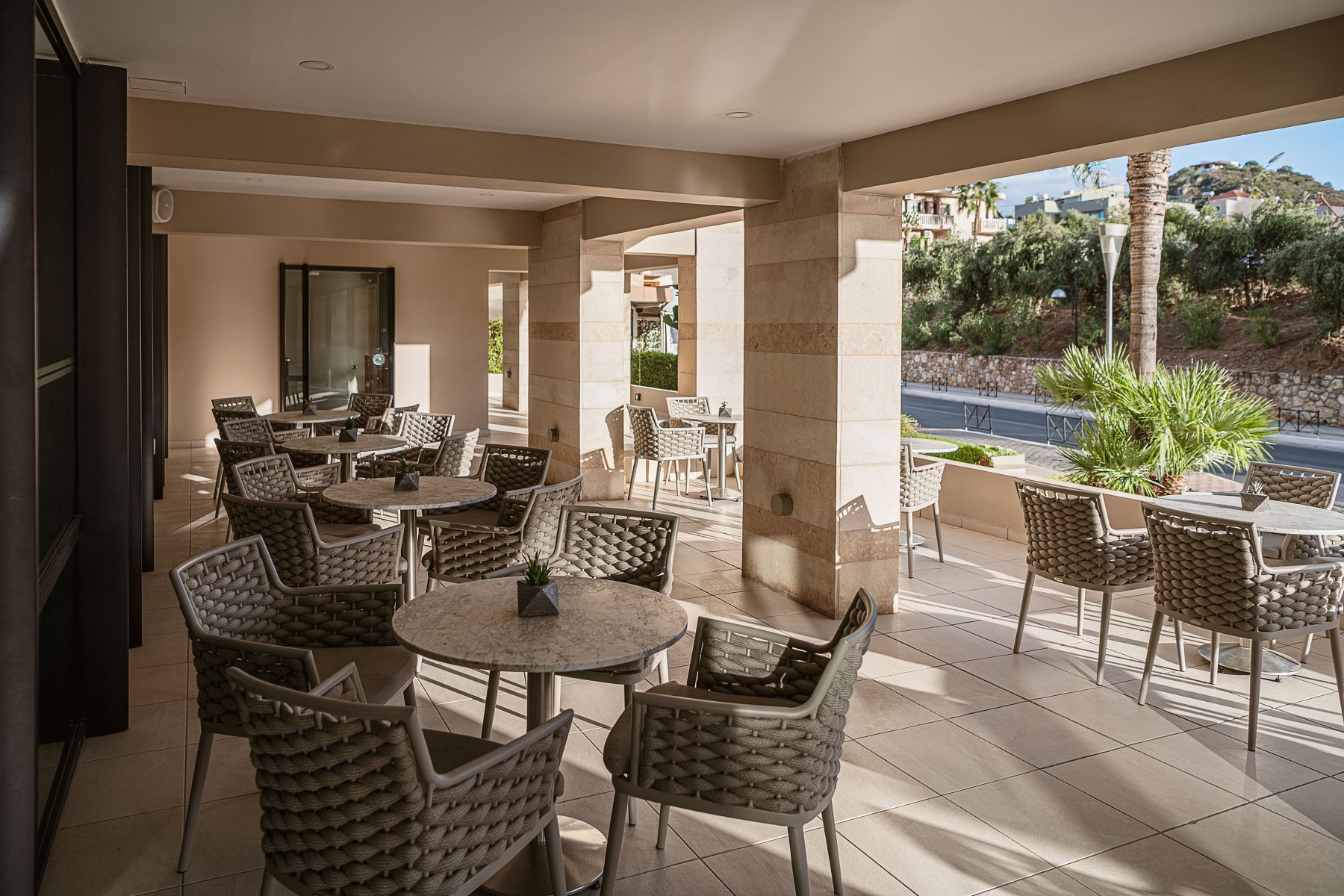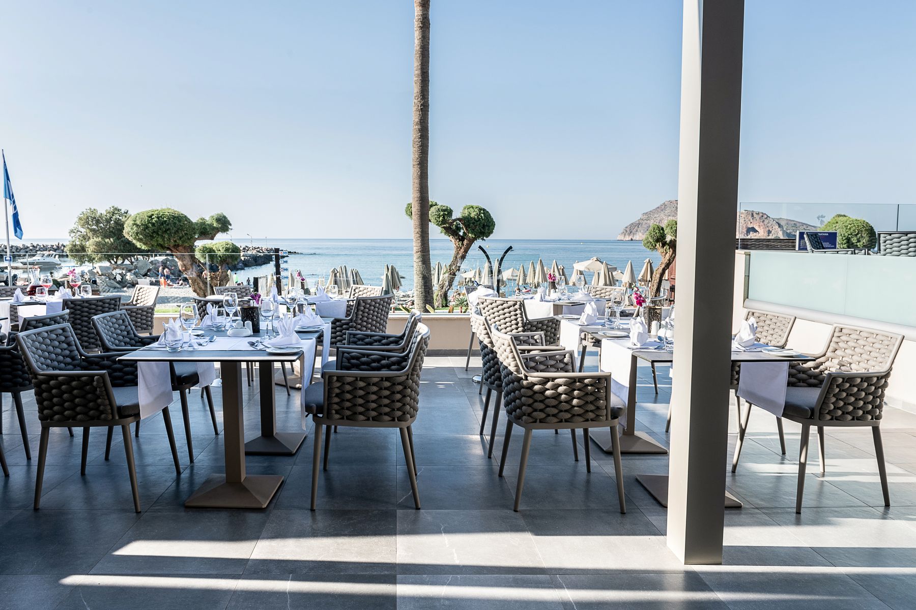 Porto Platanias Beach Resort & Spa is dedicated to embracing the local community’s products and experiences. The main restaurant boasts breathtaking views of the endless blue Cretan Sea and is the perfect place to enjoy breakfast, lunch and dinner. Guests can expect a buffet breakfast with cold and hot appetizers, a selection of fresh salads, cheeses, local and international dishes, and a fruit and pastry buffet. For lunch and dinner, the restaurant has an a la carte menu with a variety of excellent Cretan specialties and international cuisine.