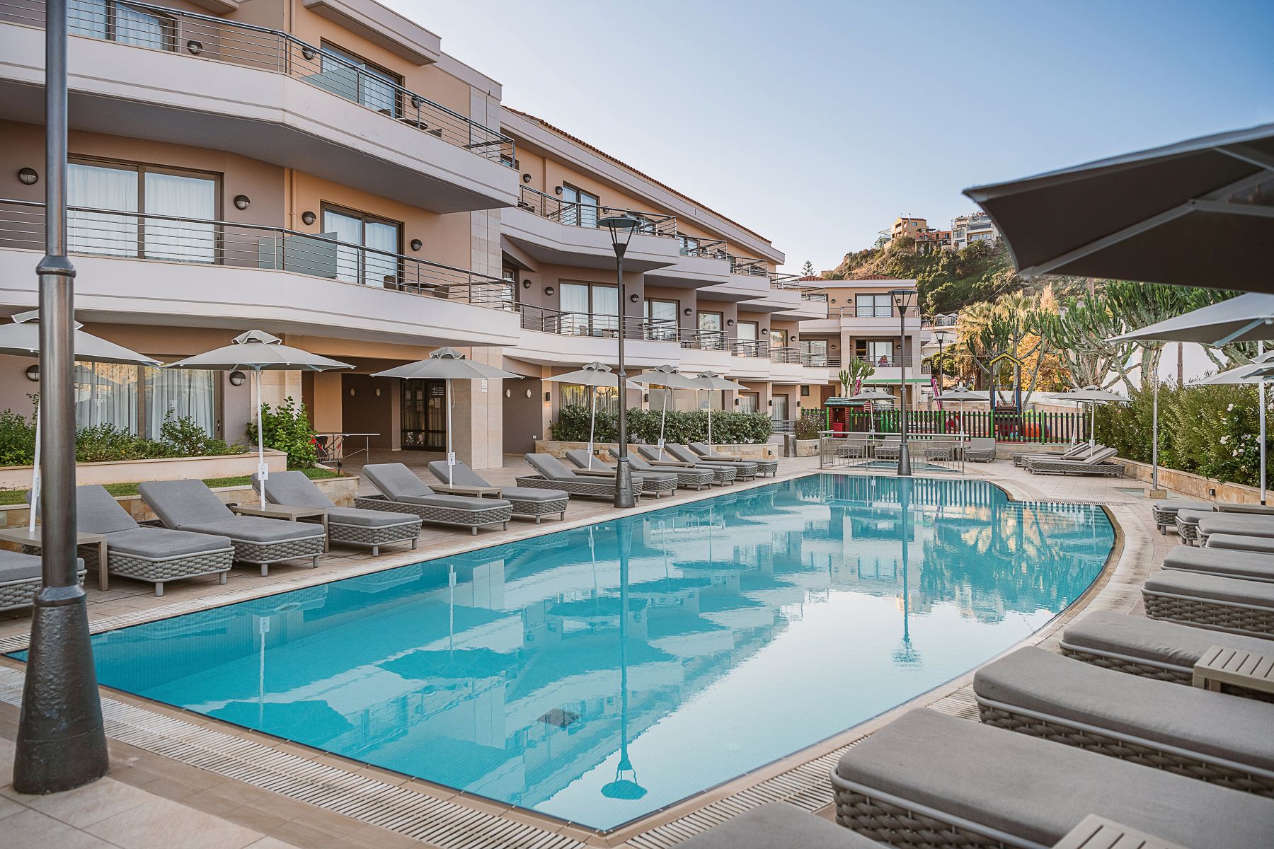 The rooms are designed and decorated to the highest aesthetic standards, creating an atmosphere of unparalleled elegance and style. Guests can choose from a range of accommodation options, including standard rooms, maisonettes, studios, apartments and suites. They can expect endless hours of carefree and relaxing fun.