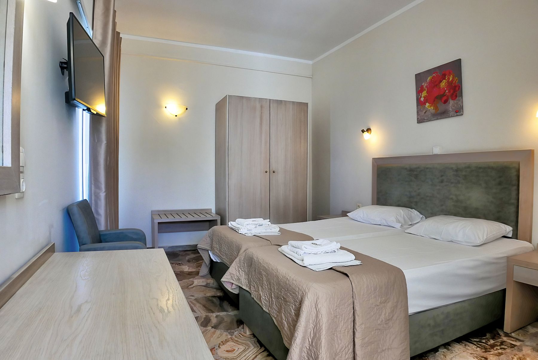 The hotel consists of 2 parts – Kavros Beach and Yassou Kriti, the distance between them are approx. 50 m. Most of the facilities, the bar and the restaurant are located in Yassou Kriti building. The hotel also offers swimming pool with children’s section, there are sunloungers and umbrellas around the pool were you can enjoy the Cretan sun and the wonderful Sea view. The sun loungers and umbrellas on the beach are free of charge. A gym can be readily accessed by those wishing to keep up their exercise regimes while traveling. Free parking is available.